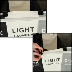 A stabil fém állvány és a tartós 600D Oxford szövet hosszú élettartamot garantál. A kosár gyorsan összecsukható és a beépített fogantyúkkal könnyen mozgatható, az elemek csatlakoztatása pedig egyszerű a erős tépőzáraknak köszönhetően.