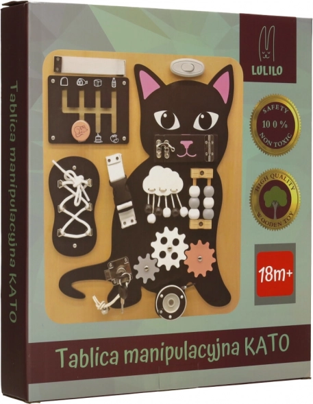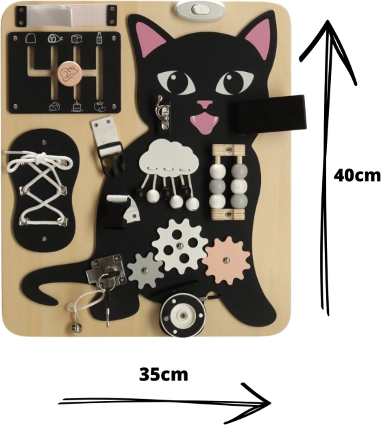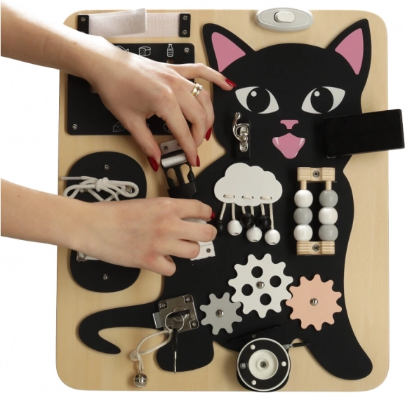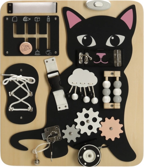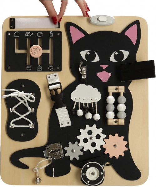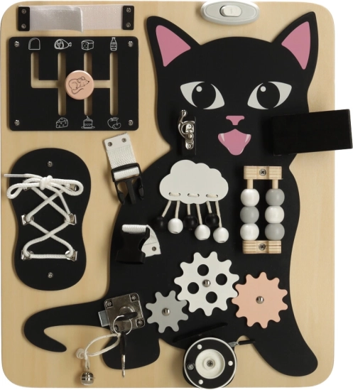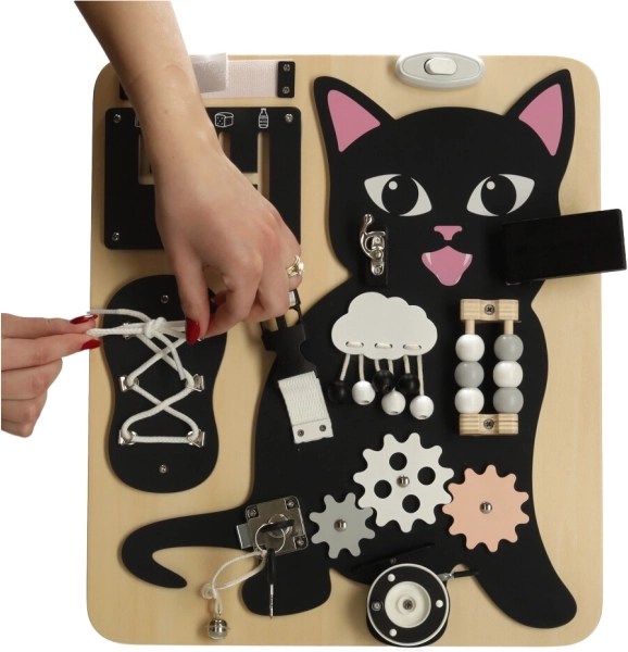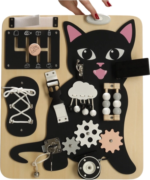 A fekete kiscica és világos fából készült részletek kombinációja felkelti a figyelmet és hosszú órákon át leköti a gyermeket.