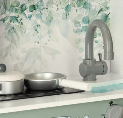 Ez a konyha 62 cm x 26 cm x 85 cm méretű, így ideális bármely gyerekszobába. A visszafogott színeknek köszönhetően könnyen illeszkedik az otthoni enteriőrbe.