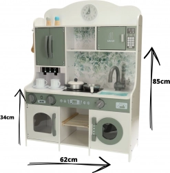 A konyha kiváló minőségű fából készült finom részletekkel, és úgy lett tervezve, hogy örömet szerezzen a szemnek és a szívnek. A fa játékok nagyszerű választás azok számára, akik környezetbarát és tartós játékokat szeretnének.