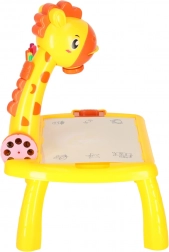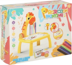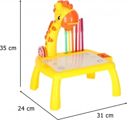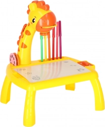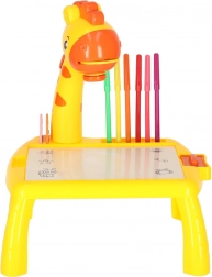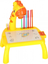 Fedezze fel, hogyan taníthatja meg a gyerekeket játékosan rajzolni! A sárga zsiráf vetítő képet vetít a papírra, amelyet a gyerekek könnyedén átrajzolhatnak. A csomag színes filctollakat, három cserélhető motívumkorongot és törölhető alátétet tartalmaz. Remek eszköz a kreativitás, a finommotorika és a pontosság fejlesztéséhez – 3 éves kortól ideális.