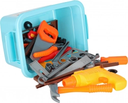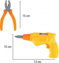 A kis barkácsolóknak szánt komplett gyermek munkapad akár 48 darabbal kínál ötletes játékot és tanulást. A színes kivitelnek és a biztonságos műanyag anyagnak köszönhetően a gyerekek fejleszthetik finommotorikájukat és koordinációjukat. A készlet tartalmaz csavarokat és anyákat, műanyag fúrót/csavarhúzót, kalapácsot, fűrészt, fogót, valamint lyukacsos elemeket az építéshez. A praktikus tárolódoboz mindent egyben tart és megkönnyíti a szállítást.