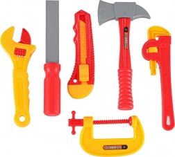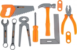 Kalapács, fűrész, fogó, kulcsok, csavarhúzók, szerkezeti elemek, valamint csavarok és anyák – minden a biztonságos csavarozáshoz, vágáshoz és összeszereléshez.