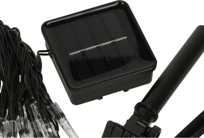 A telepítés egyszerű – a panel az ablakpárkányra vagy korlátra is tehető, illetve a mellékelt földtüske segítségével a gyepbe szúrható. A 6,5 m hosszú füzér 30 LED-del elegánsan díszíti a pergolát, a fákat és a pavilont, és az IP65 védelemnek köszönhetően ellenáll az esőnek és a nedvességnek.