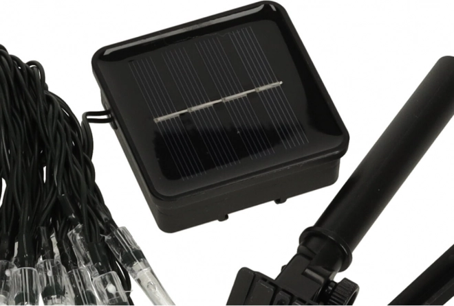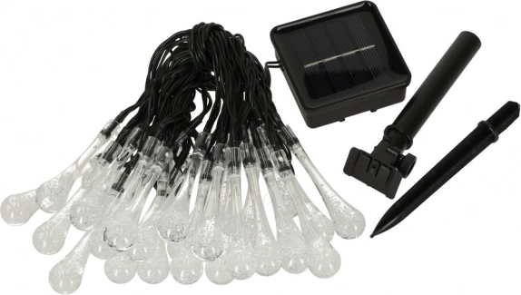 A 30 LED dióda hideg fehér fénye éjjel-nappal kiemeli a dekoratív hatást. A füzér időjárásálló (IP65), ezért alkalmas erkélyre, pergolára, teraszra, bokrok és fák közé is. A csomagban földbe szúrható tüske is található, amellyel a panel könnyen elhelyezhető a kertben.