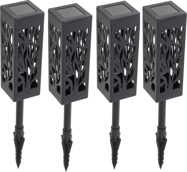 - 4× napelemes lámpa, 4× leszúrható cövek