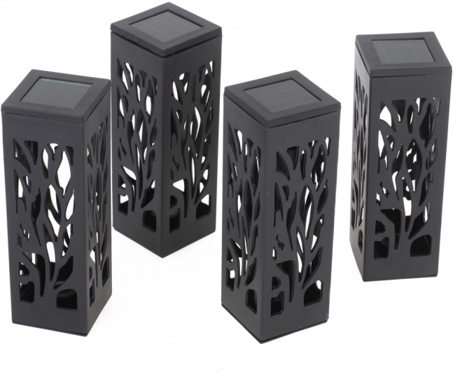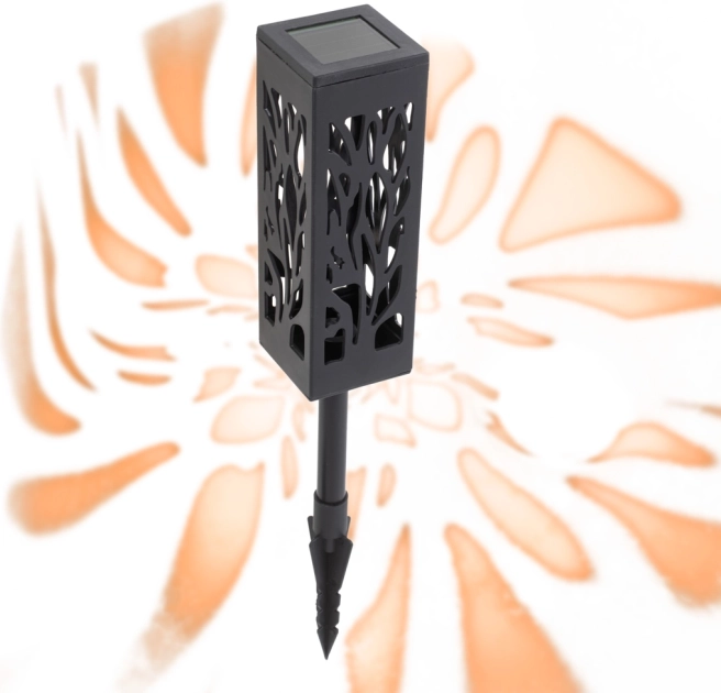 Elegáns napelemes lámpák kertbe, teraszra vagy erkélyre, melyek ötvözik a modern dizájnt és az ökobarát világítást. A lámpatest áttört dísze sötétedés után látványos fényhatásokat kelt, kiemelve a járdákat, ágyásokat és a teraszszegélyeket. A telepítés pillanatok műve – elég egyszerűen leszúrni a földbe.