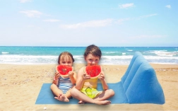 Ez a világoskék felfújható alátét ötvözi a kényelmes fekvést az ergonomikus ülés lehetőségével. A beépített felfújható párna stabil támaszt ad, tehermentesíti a hátat és a nyakat, és a strandon való olvasást vagy a hullámok nézését tiszta kikapcsolódássá varázsolja. Alacsony súlyának és leeresztve kompakt méreteinek köszönhetően könnyedén magaddal viheted a strandtáskába, hátizsákba vagy a kempingbe.