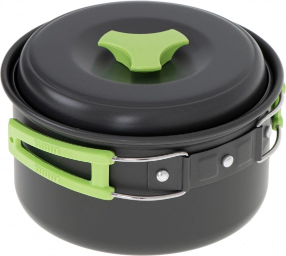 Növelje a kényelmet kempingezés közben a turista edénykészlettel. Az alumínium könnyű és tartós szerkezetének köszönhetően könnyen melegíthet vizet vagy készíthet finom ételeket a természetben. Az összecsukható fogantyúk megkönnyítik a kezelést, és ha végzett, egyszerűen összecsukhatja az edényeket a praktikus tokba.