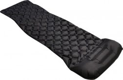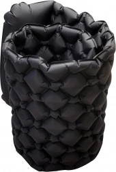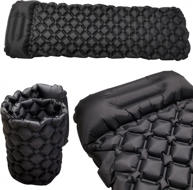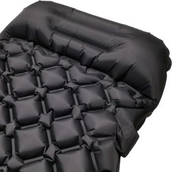 A fekete felfújható derékalj legmagasabb kényelmet kínál a természetben történő alváshoz. A különleges kialakításnak köszönhetően számos apró légpárnával rendelkezik, ami kiváló kényelmet biztosít fűben, homokban vagy más felületeken. A beépített felfújható párna szintén nagy előny, amely megkönnyíti a csomagolást és szállítást.