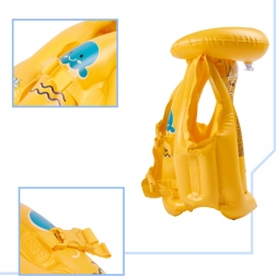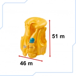 Ez a felfújható mellény ideális segédeszköz a 3-6 éves gyerekek számára, akik tanulnak úszni. Három légkamrát kínál a felfújáshoz, ami növeli a biztonságot úszás közben – még egy kamra sérülése esetén is megtartja a mellény a lebegést. Az élénk sárga szín biztosítja a jó láthatóságot a vízben, és az állítható műanyag csatok lehetővé teszik az egyszerű igazítást.
