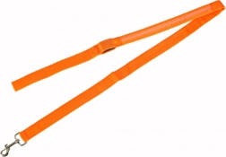 Élvezze a nyugodt és biztonságos sétákat a LED-es világító pórázzal. A fényes narancssárga szín és a három móddal (folyamatos fény, lassú villogás, gyors villogás) működő beépített LED szalag jelentősen növeli a láthatóságot szürkületben és éjszaka. A masszív textil szalag és a robusztus fém karabiner biztonságot és kontrollt ad a kedvenc felett.