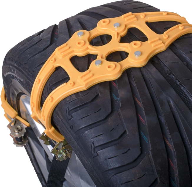 - Egyszerű és gyors felhelyezés – remek alternatíva a hagyományos hóláncokhoz.