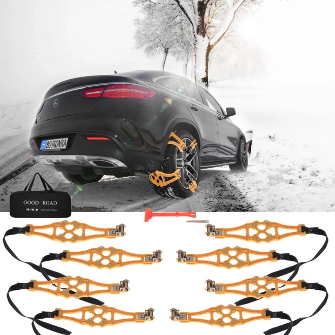 Ideális a biztonságosabb vezetéshez havas vagy jeges utakon. Ez a termék a téli időszakban minden autó kötelező tartozéka, különösen hegyvidéki területeken közlekedő sofőrök számára.