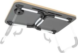 Élvezd az otthoni munkavégzést a hordozható összecsukható laptopasztallal, amely a legmagasabb szintű kényelmet nyújtja. Elég kényelembe helyezni magad a kanapé vagy ágy kényelmében, kinyitni az asztalt és elkezdeni dolgozni egy kényelmes pozícióban. Kialakításának köszönhetően az asztal hűvösen és biztonságosan tartja a laptopot, megelőzve annak túlmelegedését.