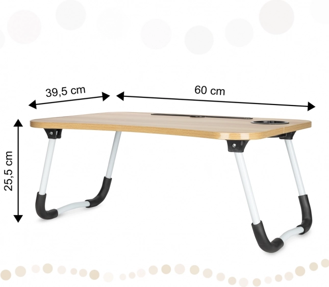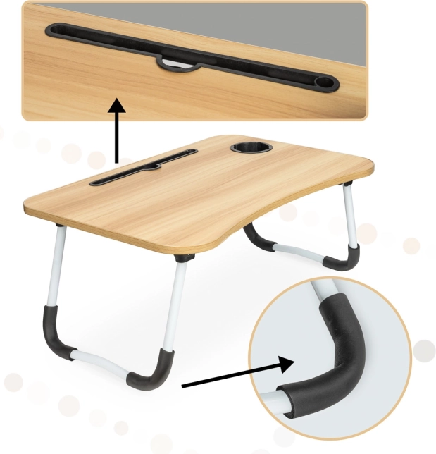 Ez az asztal nemcsak praktikus, de multifunkcionális is. Használható hordozható íróasztalként rajzoláshoz vagy tanórákra való felkészüléshez. Elengedhetetlen akkor is, ha az ágyban kívánsz reggelizni. Ha éppen nincs rá szükséged, egyszerűen összehajtod és tárolod, mert minimális helyet foglal.
