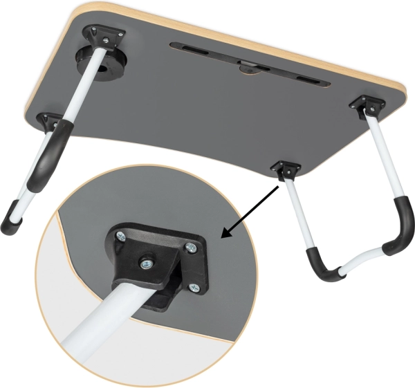 Az asztal tablet vagy telefon számára szolgáló nyílással, valamint kábelbevezetővel van ellátva, ami növeli a praktikumát. Ha tökéletes segítőtársat keresel bármely helyről való kényelmes munkavégzéshez, ez az összecsukható laptopasztal a megfelelő választás.