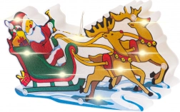 Ez a színes karácsonyi dekoráció a szánban ülő Mikulással és rénszarvasokkal meleg fehér fénnyel világít, és meghitt, ünnepi hangulatot kölcsönöz otthonának. A kétoldalas motívumnak köszönhetően az ablak mindkét oldaláról remekül mutat, és minden járókelő figyelmét felkelti.