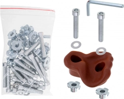A szerelés egyszerű és gyors – a csomag egy teljes szerelési tartozékkészletet tartalmaz. A fogások érdes felülete biztos fogást nyújt, a lekerekített élek pedig nagyobb biztonságot. Ideális otthoni mászófalakhoz, kerti játszóelemekhez és gyerekszobákba.