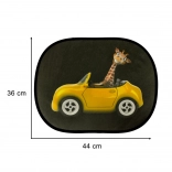 Két darabos készlet az oldalsó ablakokra, amely biztonságosabbá és kényelmesebbé teszi az utazást a forró napokon. A félig áteresztő fekete háló zsiráfmintával hatékonyan korlátozza a napsugarak bejutását, és segít csökkenteni az utastér felmelegedését.
