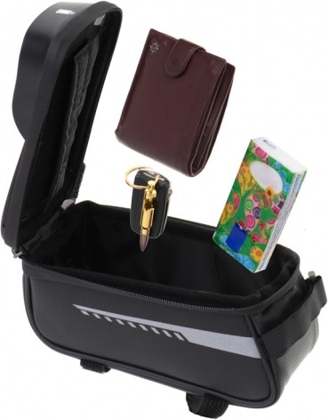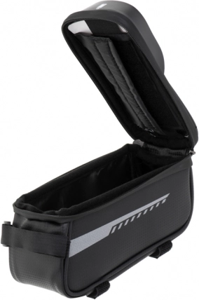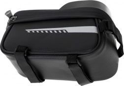Az kompakt méretei nem zavarják a tekerést. A zseb cipzárral záródik, ami biztosítja, hogy semmi se essen ki, még éles kanyarokban sem. A táska felszerelése három tépőzárral történik: egy a kormányra és kettő a vázra, ami tökéletes stabilitást biztosít utazás közben. Bármilyen kerékpármodelhez illeszkedik, márkától függetlenül.