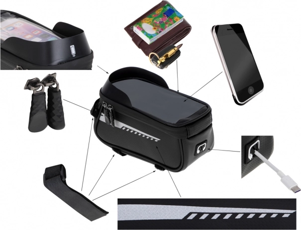Ez a vízálló kerékpáros táska a tökéletes kiegészítő minden olyan kerékpáros számára, aki funkcionális és tartós megoldást keres hosszú túrákhoz. Speciális helyet biztosít a telefon számára, így könnyen használható navigációként vagy zenelejátszóként utazás közben. A tartó úgy lett kialakítva, hogy a telefon látható és hozzáférhető maradjon egy átlátszó és vízálló ablakon keresztül.
