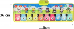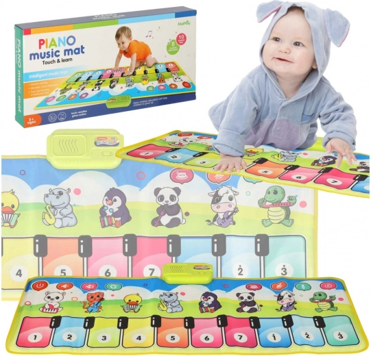 Ez a puha, hordozható gyerek zenei szőnyeg minden lépést vagy érintést örömteli hanggá változtat. A gyerekek felfedezhetik nyolc hangszer hangját (zongora, cselló, harmonika, szaxofon, xilofon, klarinét, gitár, fuvola), játszhatnak a 10 számozott billentyűn, és meghallgathatnak 10 beépített dallamot. Ideális a hallás, a ritmusérzék és a finommotorika fejlesztéséhez.