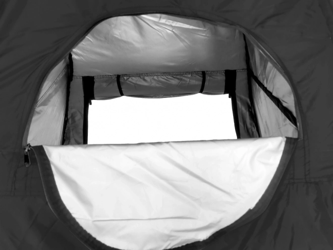- Elöl cipzáras bejárat található. Hátul egy kisebb, szintén cipzáras nyílás van, amely ablaknak is kiválóan alkalmas. A sátornak nincs padlója.