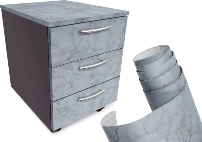 Ez a valósághű szürke márvány mintás öntapadó fólia gyorsan modern megjelenést kölcsönöz a belső térnek, és segít eltakarni a karcolásokat, kopásnyomokat vagy színeltéréseket. Ideális falakra, párkányokra, szekrényekre, komódokra és más lapos, egyenes felületekre otthon vagy irodában.