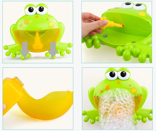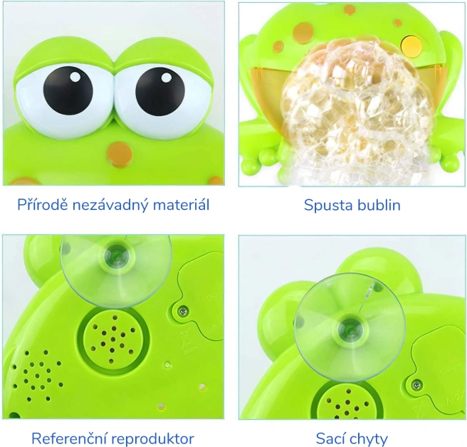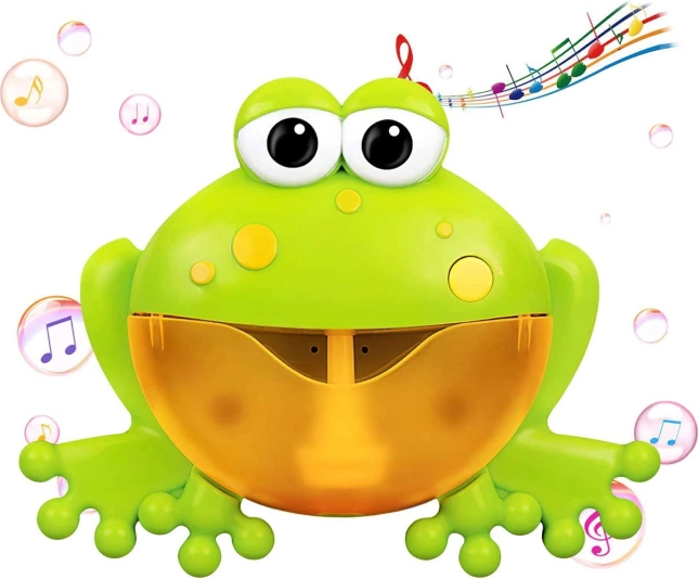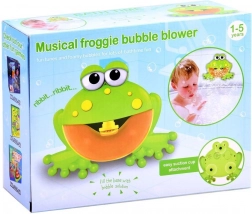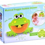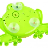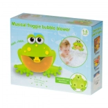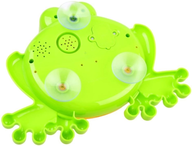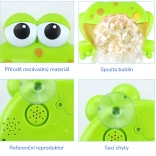 A buborékkészítés közben a béka játékos dallamokat játszik, igazi mini show-vá varázsolva a fürdést.