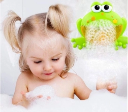 Ez a békás buborékkészítő a hétköznapi fürdést örömteli előadássá változtatja. Csak töltsd meg a levehető tartályt víz és gyerekhabfürdő keverékével, rögzítsd a játékot tapadókorongokkal a sima felületre, majd nyomd meg a gombot. A béka rengeteg buborékot fúj, és vidám dallamokkal szórakoztatja még a fürdést kevésbé kedvelő kicsiket is.