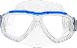 Két nagy lencse és puha szilikon perem biztosítja a széles látómezőt és a megbízható tömítést kellemetlen nyomás nélkül.