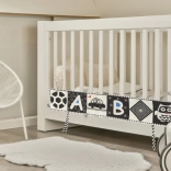 Ismerd meg a formák és színek világát ezzel a varázslatos textilkönyvvel, mely sosem szűnik meg lenyűgözni a kicsiket. Akár 12 különböző kontrasztos mintát kínál és szalagokkal rögzíthető a kiságyhoz védő rácsvédőként. Tökéletes kiegészítő a biztonság és a gyermekek fejlődése érdekében.