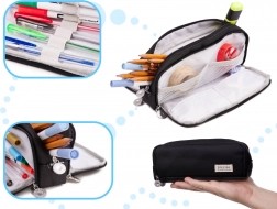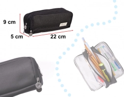 Praktikus 3 az 1-ben iskolai tolltartó három rekesszel, amely elfér minden szükséges írószernek, és egyben szolgálhat sminktáskaként vagy utazási rendezőként. Tartós poliészterből készült, kompakt méretű, és cipzáras zárással biztosítja az apróságok biztonságos tárolását.