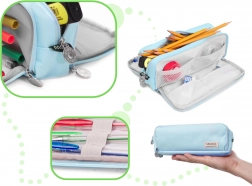 Praktikus és tágas 3 az 1-ben iskolai tolltartó három különálló, cipzáras rekesszel, amely segít rendet tartani az iskolai felszerelésekben és a kozmetikumokban is. Kompakt méretének köszönhetően könnyen elfér hátizsákban vagy kézitáskában, és használható utazó tasakként vagy pénztárcaként is. Tartós poliészterből készült a hosszú élettartamért és a áttekinthető rendszerezésért a mindennapi apróságokhoz.