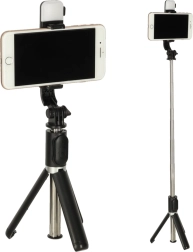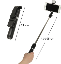 A beépített LED lámpa 8 diódával 6 fényerőfokozatot és meleg vagy hideg fényválasztást kínál – ideális szelfikhez, közvetítésekhez és videóhívásokhoz. A teleszkópos rúd akár 105 cm-ig kihúzható, így könnyedén befoghatja a szélesebb jelenetet is. Összecsukva kompakt, és könnyen elfér kézitáskában vagy hátizsákban.
