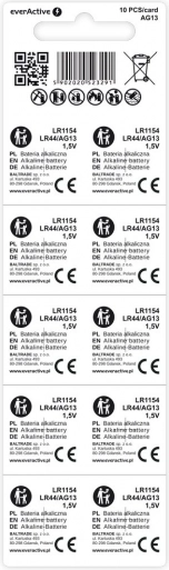 EverActive LR44 LR1154 elemek megbízhatóan táplálják eszközeit, mint például játékok, számológépek vagy LED dekorációs világítás.