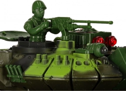 A modell gazdag effekteket kínál: első LED lámpák, látványos toronyvilágítás, valamint autentikus motorhang, ágyúlövés és géppuskatűz. A puha gumi lánctalpakkal különböző felületekkel birkózik meg, és kiválóan tartja az irányt. A nyitható toronynyílásba behelyezhető a mellékelt tankos figura géppuskával. A működést tölthető akkumulátor biztosítja, így az üzemeltetés gazdaságos és kényelmes.