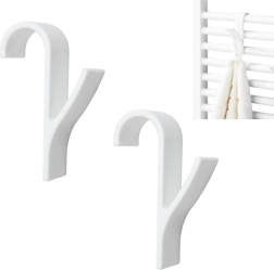 A felszerelés fúrás és szerszámok nélkül történik – elég az akasztót a radiátor vízszintes rúdjára akasztani. A tartós műanyag kivitel könnyű, erős és könnyen tisztán tartható. A semleges fehér szín egyaránt illik a modern és a klasszikus enteriőrökhöz.