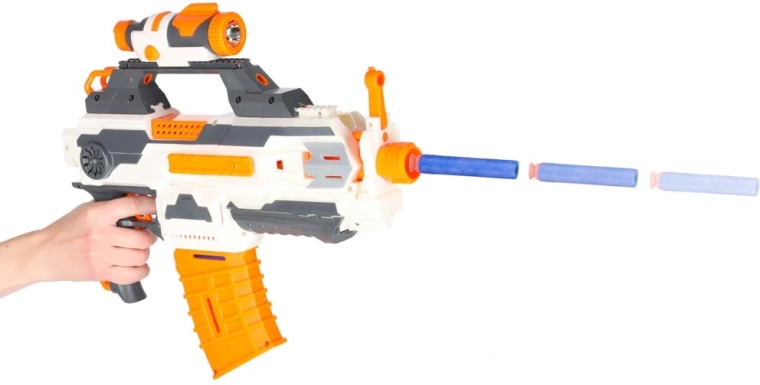 A hablövedékes blasterekkel való játék fejleszti a csapatmunkát, a koordinációt és a kézujjak finommotorikáját a tárak töltése során. A nagy ajándékcsomagolás már kibontáskor örömet szerez – szórakozás 6 éves kortól felnőtteknek is.