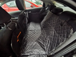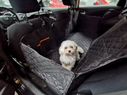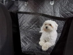 A két oldalon lévő cipzárakkal körbezárható az ülések körüli tér, így az ajtó kinyitásakor a kutya nem ugrik ki, és a belső tér védett marad.