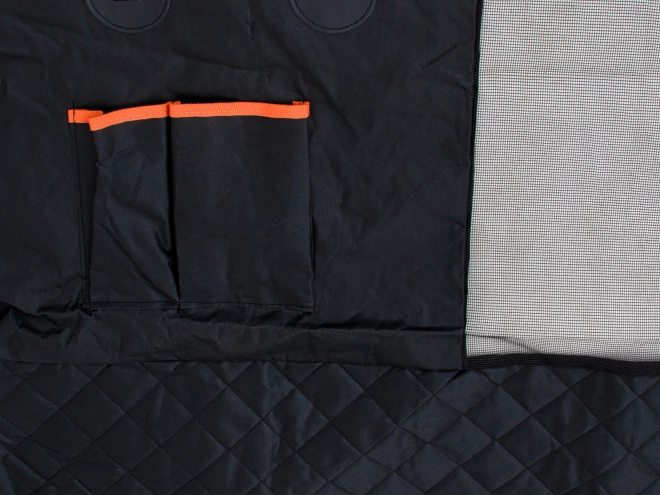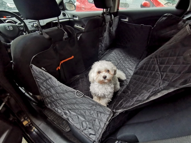 Elöl hálós betét található, amely javítja a levegőáramlást, és lehetővé teszi, hogy a kutya lásson bennünket és az utat, anélkül hogy megpróbálna előremenni az első ülésekre. Az alsó oldal csúszásgátló anyagból készült a stabilitásért, nem hiányoznak a biztonsági övek nyílásai és két praktikus zseb a póráznak vagy a jutalomfalatoknak. A strapabíró anyagoknak és a fém gyűrűknek köszönhetően a huzat plusz biztonságért az ajtók feletti kapaszkodókhoz is rögzíthető.