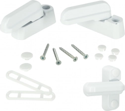 A csomagban 2 biztonsági elem, műanyag alátétek és csavarok találhatók – csak egy csavarhúzó szükséges. A szerelés gyors és stabil.