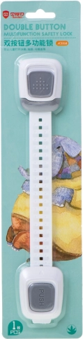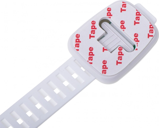 A biztonsági zár ideális a gyerekek megóvására a háztartásban található veszélyes és törékeny tárgyaktól. A felszerelés egyszerű az öntapadó szalagnak köszönhetően, amely nem igényel szerszámokat vagy fúrást. Ajánlott 12 órát várni, amíg a ragasztó teljesen hozzátapad a felülethez.