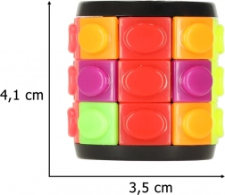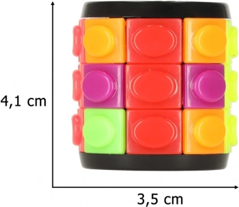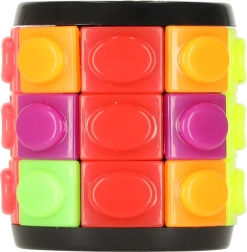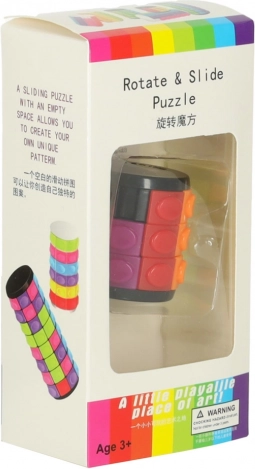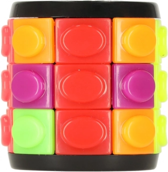 Szórakoztató és okos logikai kirakó henger formában három sorral, amely örömet szerez gyerekeknek és felnőtteknek egyaránt. A forgó gyűrűk és az üres mező lehetővé teszik a színes elemek áthelyezését és a színek helyes sorrendbe rendezését. Remek a türelem, a koncentráció és a finommotorika fejlesztésére. Ideális zsebes fejtörő utazáshoz, iskolába és irodába. Forgó henger, 3 sor, logikai tanulás, stresszoldó szórakozás.