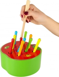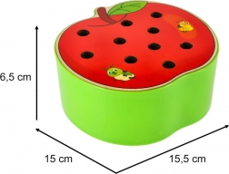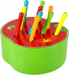 A mágneses pálca és az alma nyílásai pontos mozdulatokra ösztönzik a gyerekeket, így természetes módon erősítik a kéz–szem koordinációt és a türelmet.