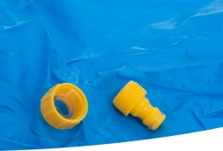 Ez a nagy vízi szőnyeg ideális a forró napokra – a peremről permetező vízsugarak lekötik a gyerekeket, és kellemesen lehűtik őket. Elég csatlakoztatni a szokásos kerti tömlőt, és a víznyomással szabályozni a permet magasságát. Összehajtva kompakt, így tároláskor minimális helyet foglal.