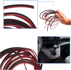 Adj modern megjelenést autód belső terének a 5 m hosszú, piros díszítő szegéllyel. Könnyen benyomható a műszerfal és a burkolati elemek közötti hézagokba, rugalmas, kopásálló, és gyors, nem invazív belső tér átalakítást tesz lehetővé. A csomag tartalmaz egy műanyag spatulát a könnyű szereléshez.