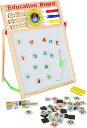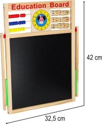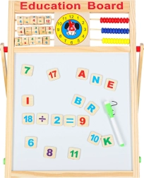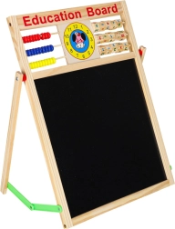 Ez a többfunkciós tábla ideális otthoni tanuláshoz és gyerekszobába. A fekete oldal krétás rajzolásra és írásra, a fehér mágneses oldal filctollal való írásra és mágnesek rögzítésére szolgál. A stabil fa szerkezet biztonságos és kényelmes használatot biztosít.
