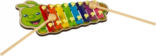 Ez a színes gyerek xilofon ideális első hangszer. A nyolc, hangolt fém lamella szivárványszínekben ösztönzi a természetes kíváncsiságot, és játékos módon fejleszti a zenei hallást és a ritmusérzéket. Elég egy finom koppintás az ütővel, és felcsendül a tiszta hang – az ütés ereje befolyásolja a hangerőt.